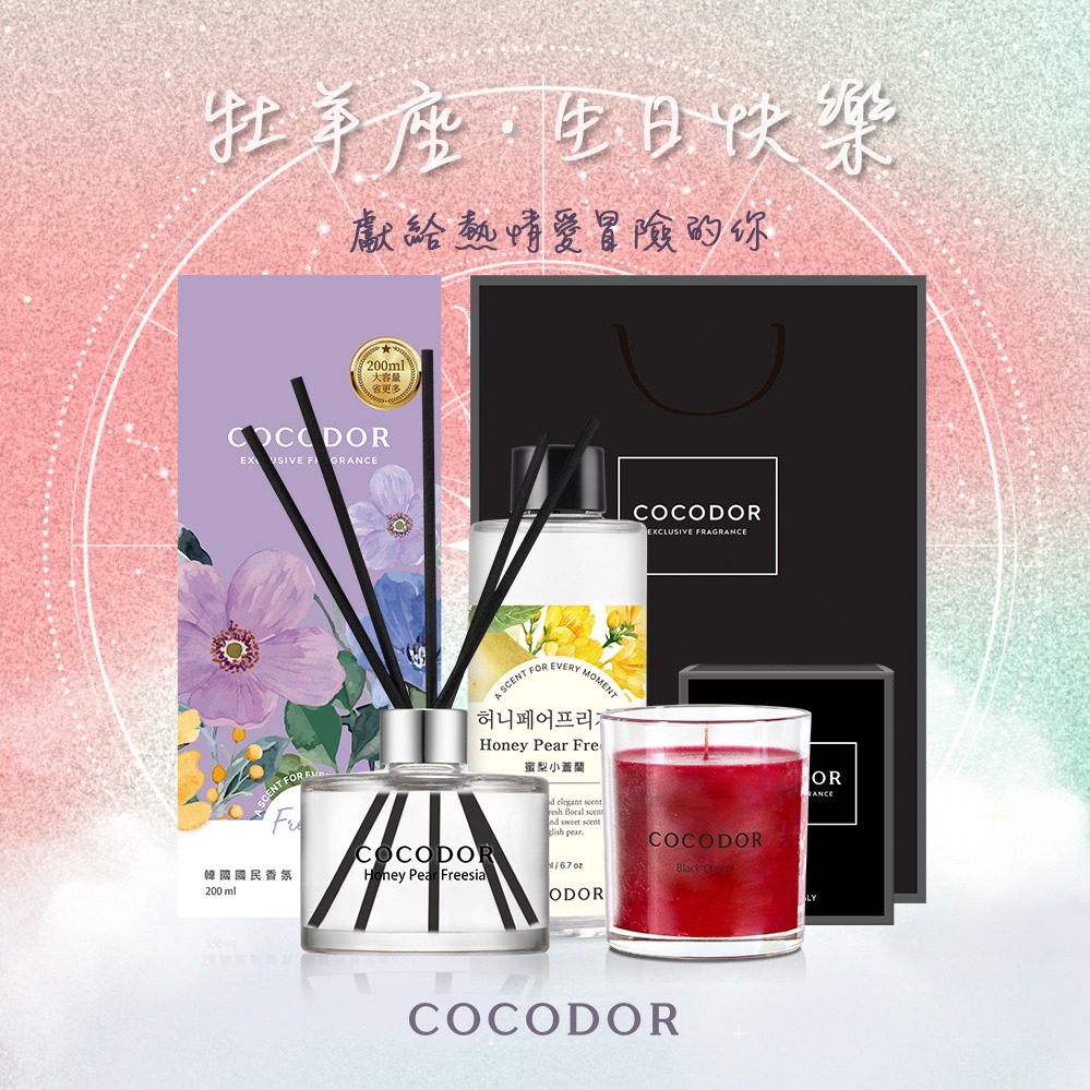 【COCODOR】水瓶座|星座香氛獻禮 - 經典擴香瓶+補充瓶+香氛蠟燭+品牌提袋