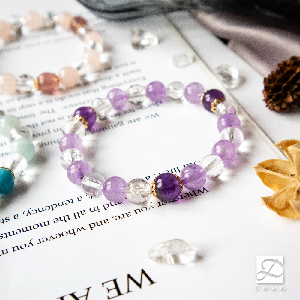 「快速到貨」【彤恩時尚】獻給空靈系的妳 ❣ 愛在冰雪紛飛時《葡萄石 白水晶》鉤扣式水晶手鍊 // 生日禮物 情人節禮物