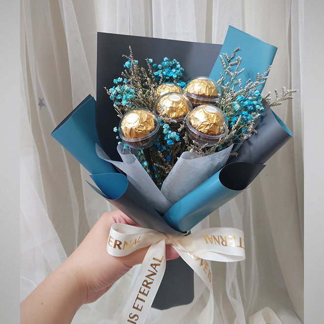 【KIRA與花花藝】I LOVE YOU金莎花束/三顆/水藍/乾燥花花束/情人節花束/畢業花束/生日禮物/情人節禮物