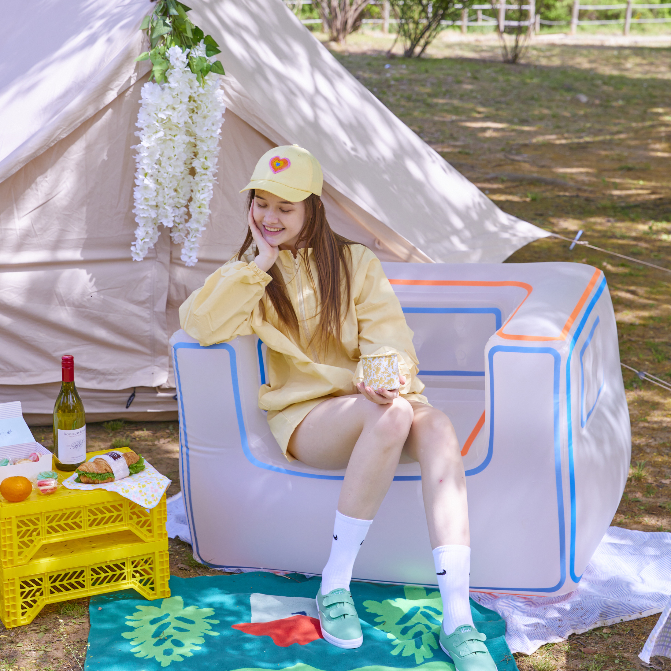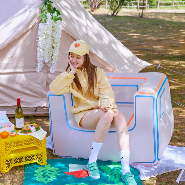 隨時笑臉迎人【Lightree】DREAMI SOFA 夢幻空氣沙發椅 - WIGLEWIGLE (笑臉小花) 戶外活動 海邊沙灘 公園野餐 可愛療癒 防水沙發椅 輕巧好攜帶 創意無限