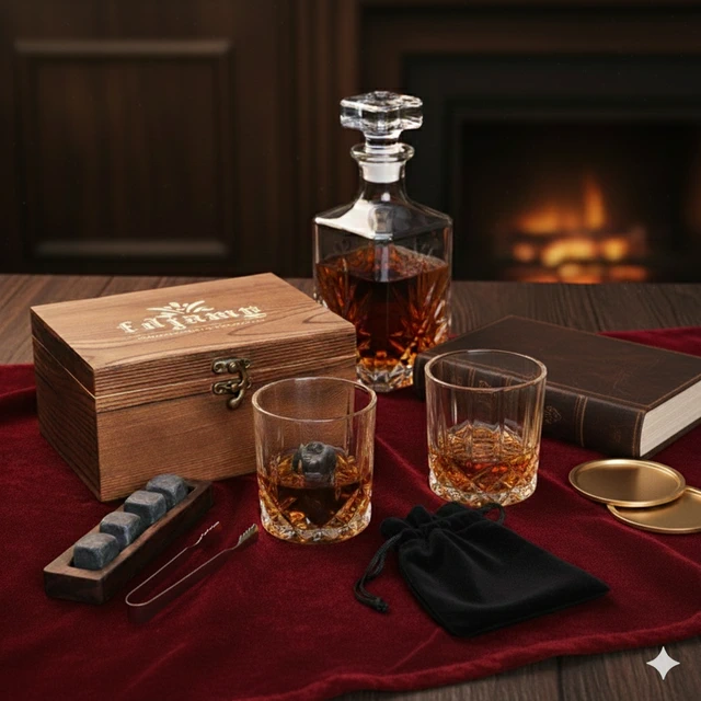 收禮人自選款式|高奢復古木箱威士忌波本杯冰石杯墊禮盒組|送給重要的朋友長輩 喬遷之禮|送禮自用兩相宜 酒品藏家蒐藏