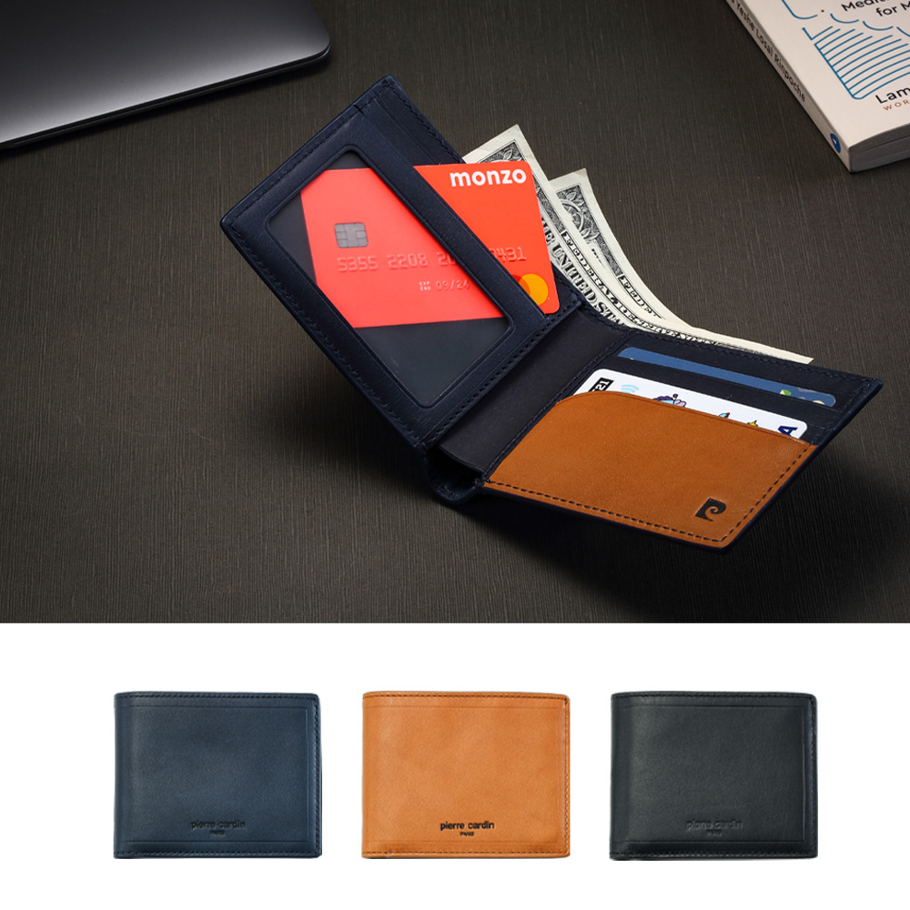 快速出貨|【pierre cardin 皮爾卡登】8卡真皮367系列撞色短夾-3色