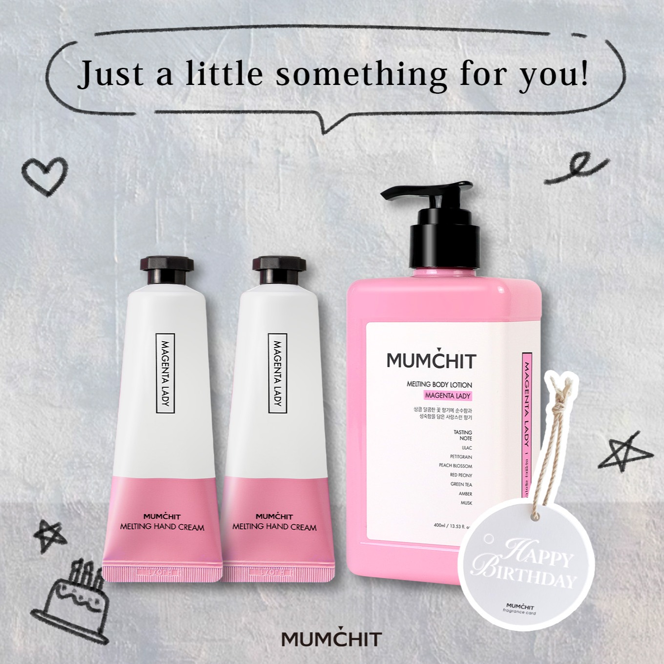 快速出貨【MUMĆHIT】射手座生日快樂!香氛身體乳液+香氛護手霜2入+霧銀禮袋『LINE 禮物獨家』(生日禮物)(射手座禮物)