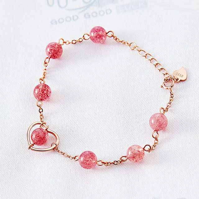 【彤恩時尚】愛情 水晶手鍊 // 白水晶 草莓晶 粉水晶 月光石 // 黃銅鍍金 彈性手鏈《客製化手圍》ღ 嫵媚的自我