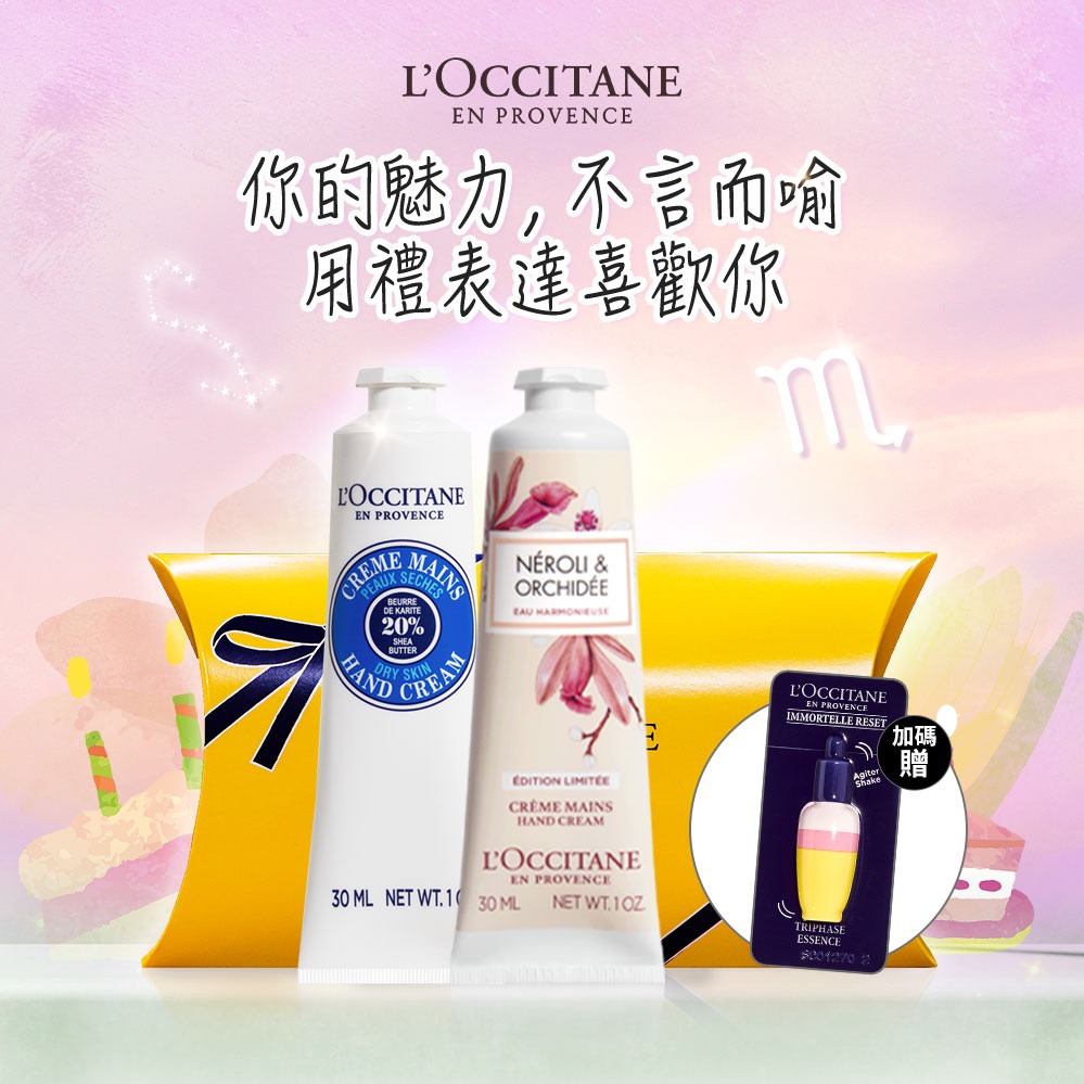 [限時加贈守護掛飾]【歐舒丹】🙌花語Hug & Kiss (收禮者任選香氛)💋(護唇膏+護手霜+禮盒)『LINE禮物獨家組合』🎁迎新年