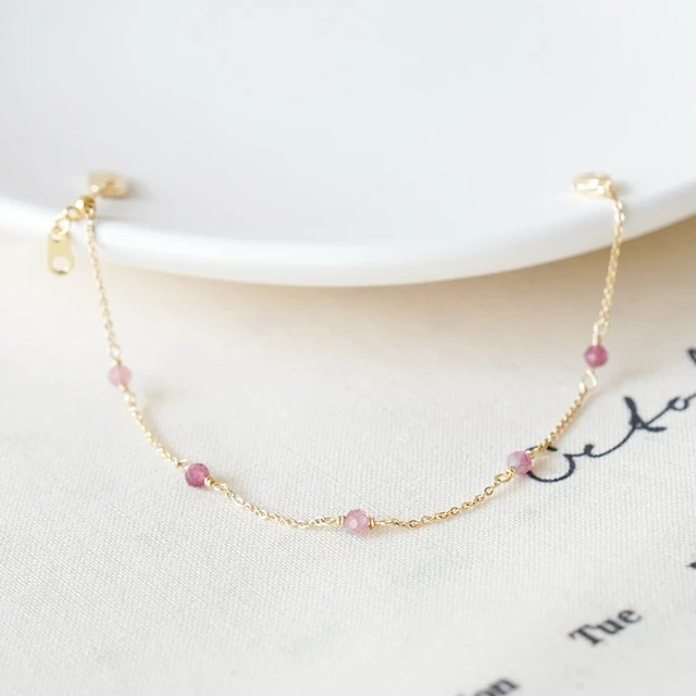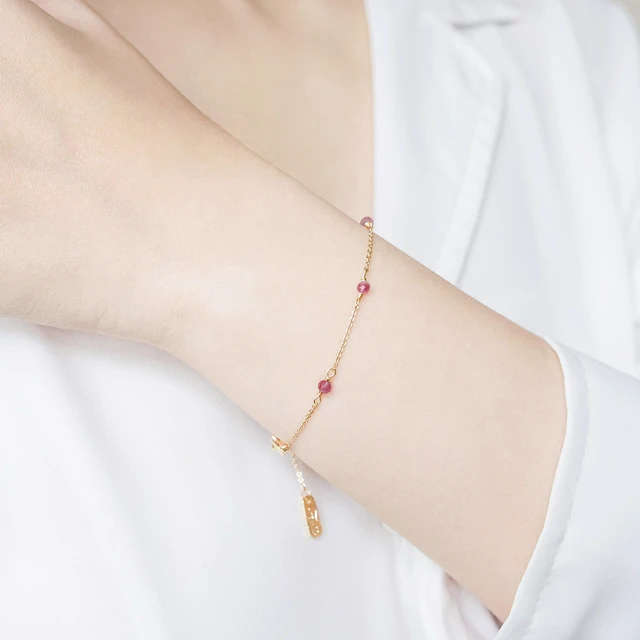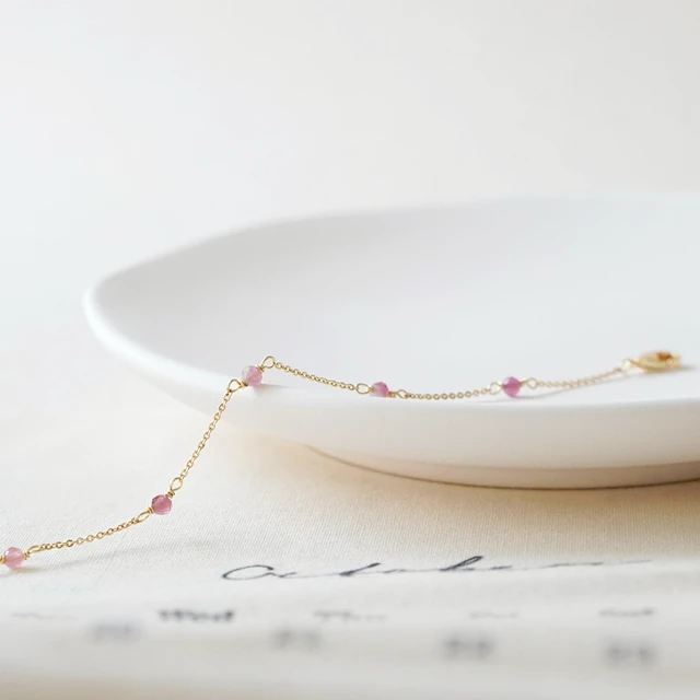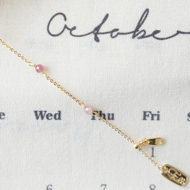 【Ficelle輕珠寶】十月誕生石 • 幸運日記| 粉碧璽 草莓晶 淡水珍珠 黃蛋白石 誕生石 生日水晶 黃銅鍍18K金 手鍊