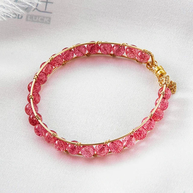 【彤恩時尚】愛情 水晶手鍊 // 白水晶 草莓晶 粉水晶 月光石 // 黃銅鍍金 彈性手鏈《客製化手圍》ღ 嫵媚的自我