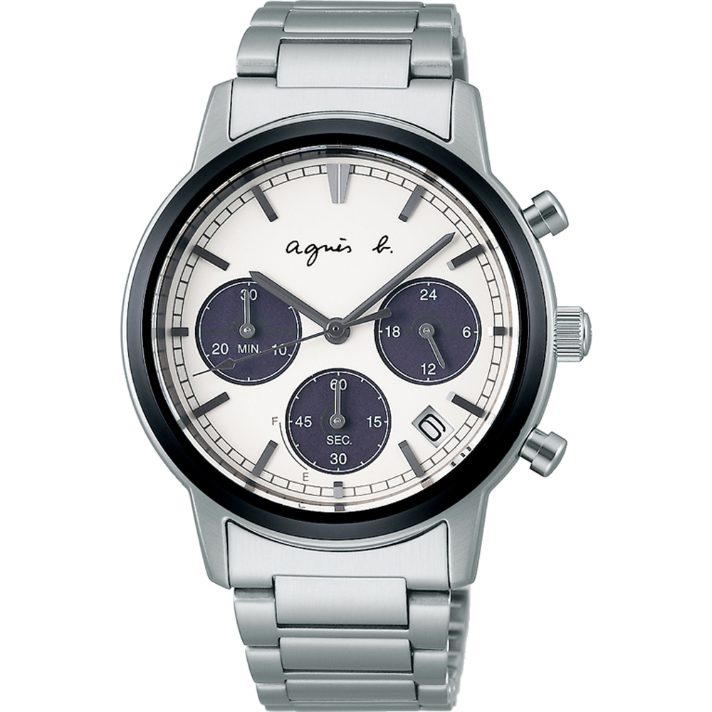 【agnes b.】巴黎城市戀人三眼計時手錶-銀/39mm (BU8010P1/V175-0DP0S)