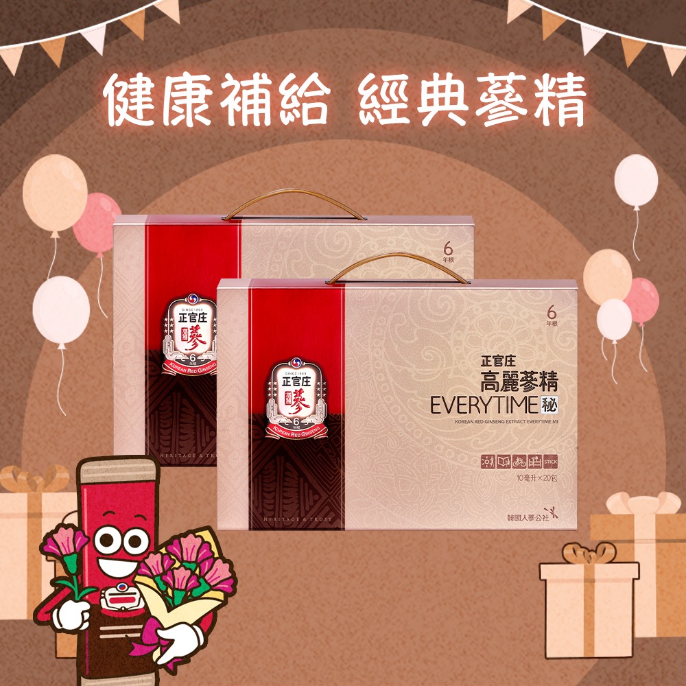生日快樂 蔘潤時光 蜜藏祝福【正官庄】高麗蔘精EVERYTIME秘(20入)(效期2026/8)-提把 送BRAVO人物收納布袋