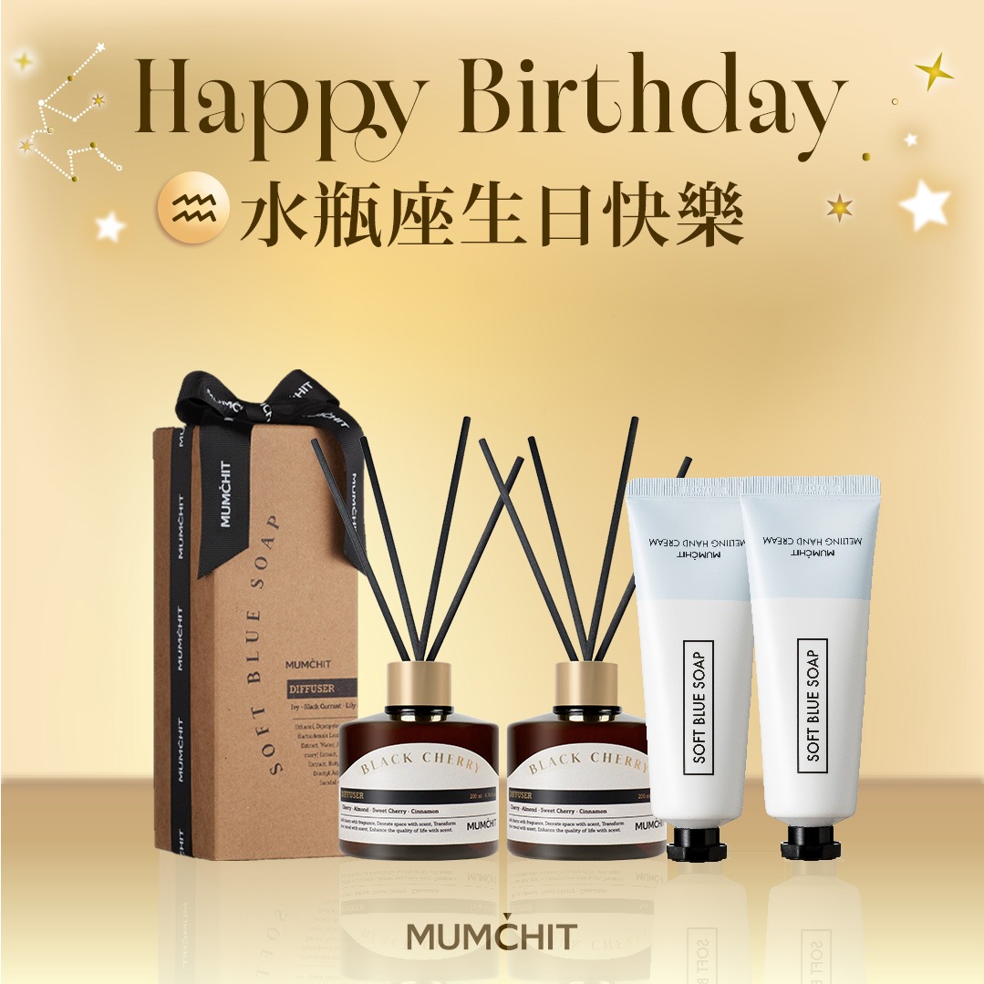 快速出貨【MUMĆHIT】水瓶座生日快樂!衣物香水+香氛護手霜2入+質感紙袋『LINE 禮物獨家』(生日禮物)(水瓶座禮物)