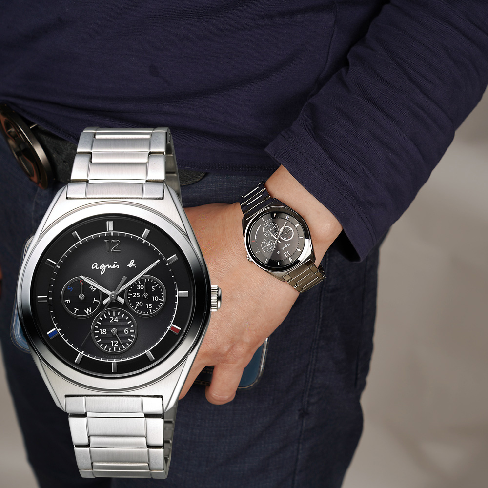 【agnes b.】巴黎城市戀人三眼計時手錶-銀/39mm (BU8010P1/V175-0DP0S)