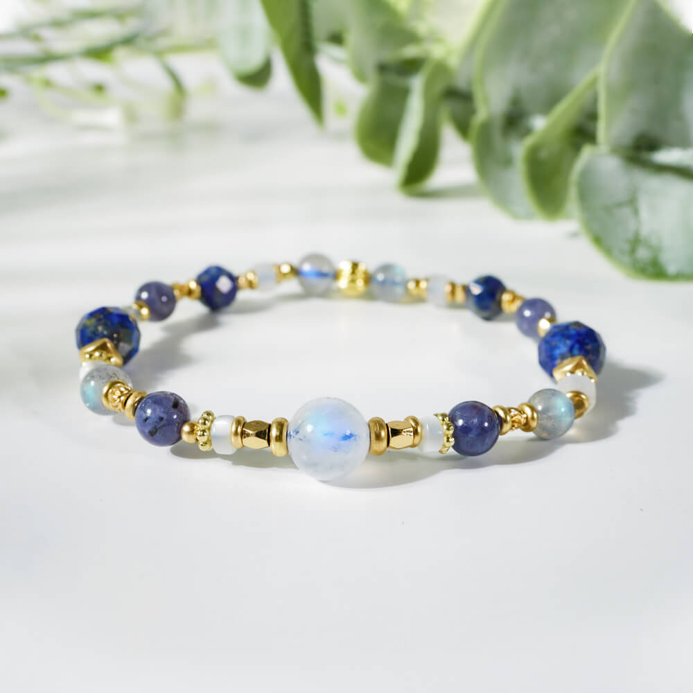 【月色真美】[事業招財]領航者 | 虎眼石藍紋石拉長石黑曜石雙圈手鍊