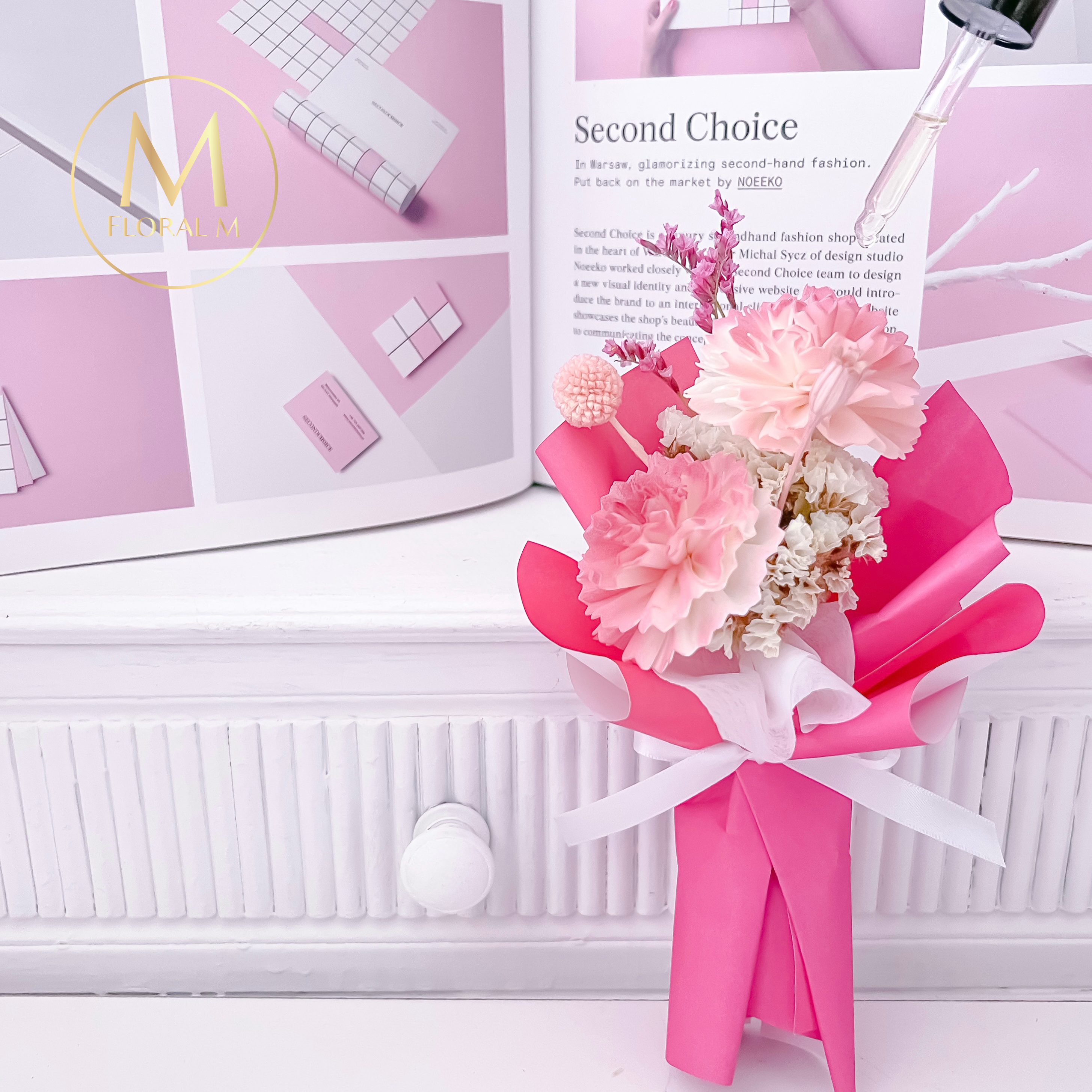 【KIRA與花花藝】一心一意金莎花束/十一顆/粉灰/乾燥花花束/情人節花束/畢業花束/生日禮物/情人節禮物