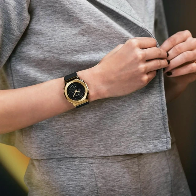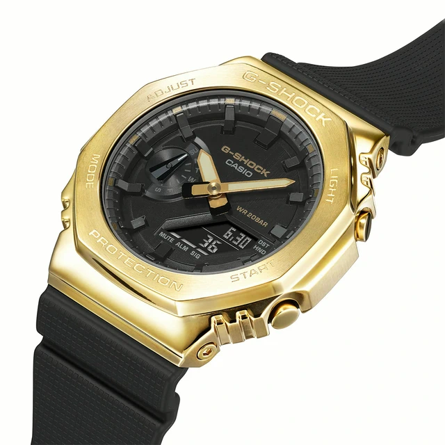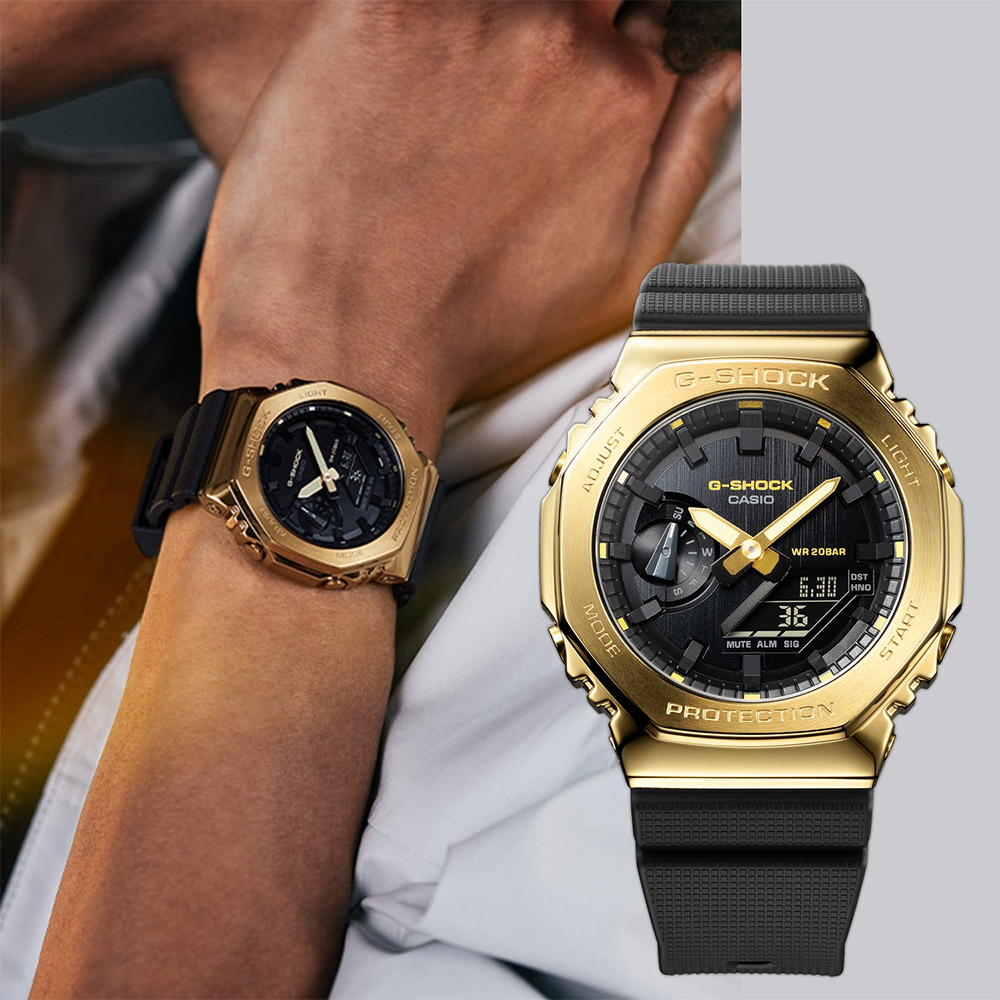 [與你分享幸運]CASIO 卡西歐 G-SHOCK 工業風大錶殼金屬雙顯手錶-黑x金 GM-110BD-1A9
