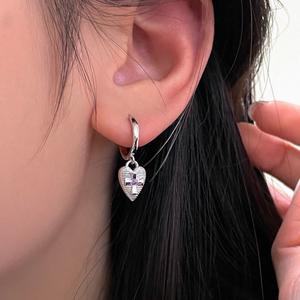 【SoLight鹽青】雙鑽十字的心耳環SL342|14K金耳飾|精緻小鑽 情人送禮 信仰祝福|以兩顆精緻鋯石交織成十字,象徵命運交錯。搭配14K金打造的溫潤光澤,細膩而不張揚,增添一抹溫柔閃耀