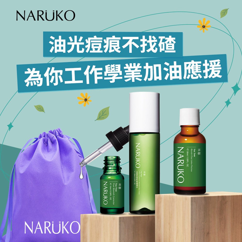 有你的世界天天都是情人節【牛爾NARUKO】茶樹抗痘美白嫩膚組(調理水150ml+美白精華30ml+美白黑面膜5入+NARUKO束口袋)∣生日快樂