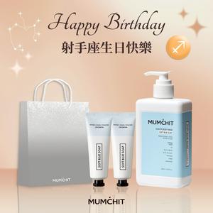 快速出貨【MUMĆHIT】射手座生日快樂!天然香氛沐浴乳+香氛護手霜2入+霧銀禮袋『LINE 禮物獨家』(生日禮物)(射手座禮物)