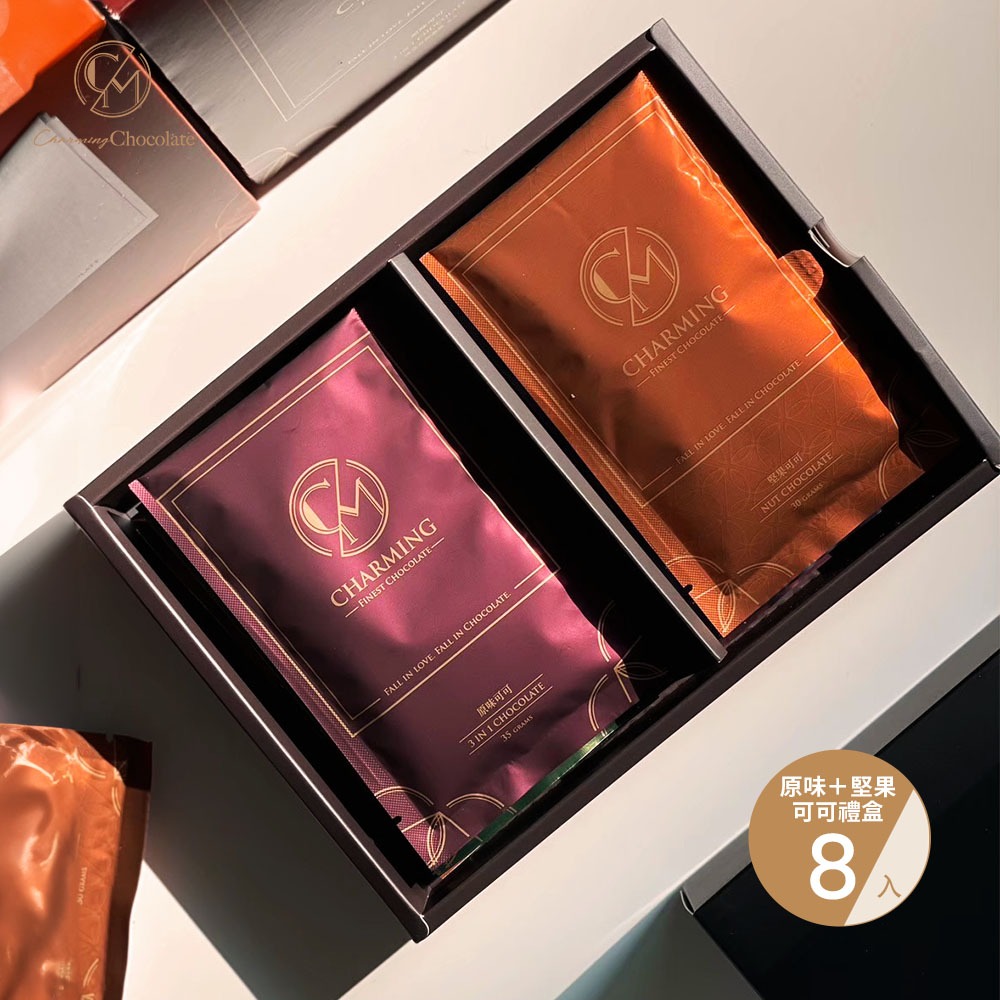 再忙也要記得你生日!快樂要加倍【Charming 喬名巧克力】 經典組合 『原味+堅果可可』 8 入組禮盒 ( 贈品牌紙袋 ) 快速出貨