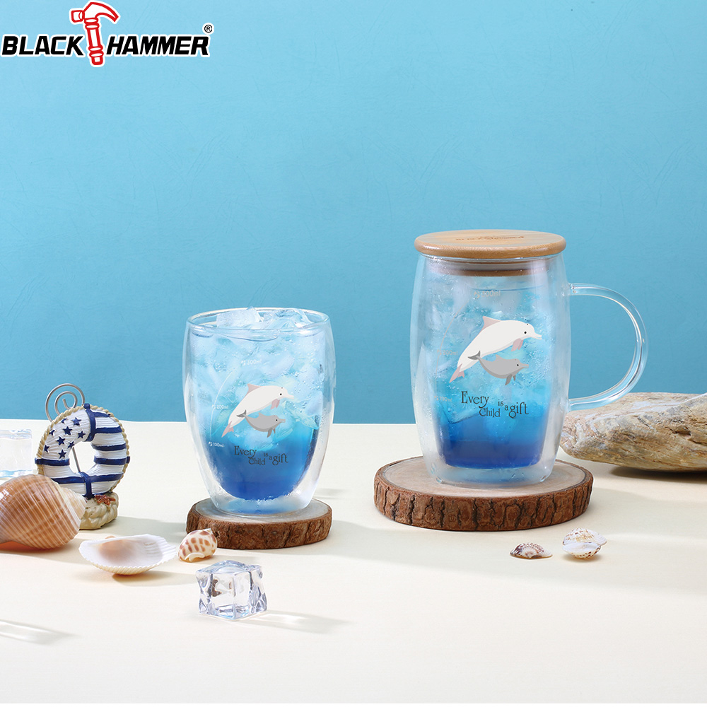 【+17元多一件】【義大利BLACK HAMMER】隨享耐熱玻璃雙飲杯550ml-藍