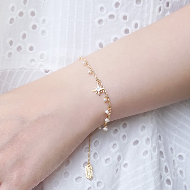 【Ficelle輕珠寶】十二月誕生石 • 幸運日記| 綠松石 淡水珍珠 白水晶 誕生石 生日水晶 黃銅鍍18K金 手鍊
