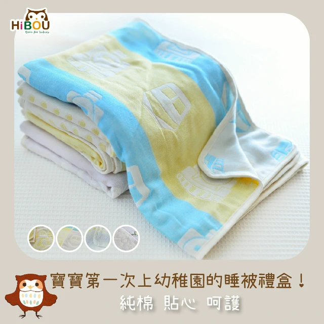 【喜福HiBOU】6重紗呼呼大睡被嬰兒棉被禮盒_82.5X105cm M號(附卡片和紙袋)