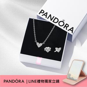 [雙11限時優惠][客製化卡片]禮物獨家品牌立鏡組💝Pandora官方直營】璀璨三角心形項鏈-925銀+耳環+立鏡。情人節禮物。生日禮物。周年禮物