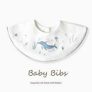 【安琪兒婦嬰百貨】棉嬰庫 MianYingKu 嬰兒刺繡圍兜/新生兒圍兜口水巾(海豚)