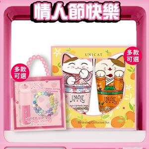 【UNICAT 變臉貓】情人節快樂|水光保濕玻璃唇油(草莓/蜜桃/蜂蜜)+幸運降臨/橙心橙意 護手霜2入禮盒 任選