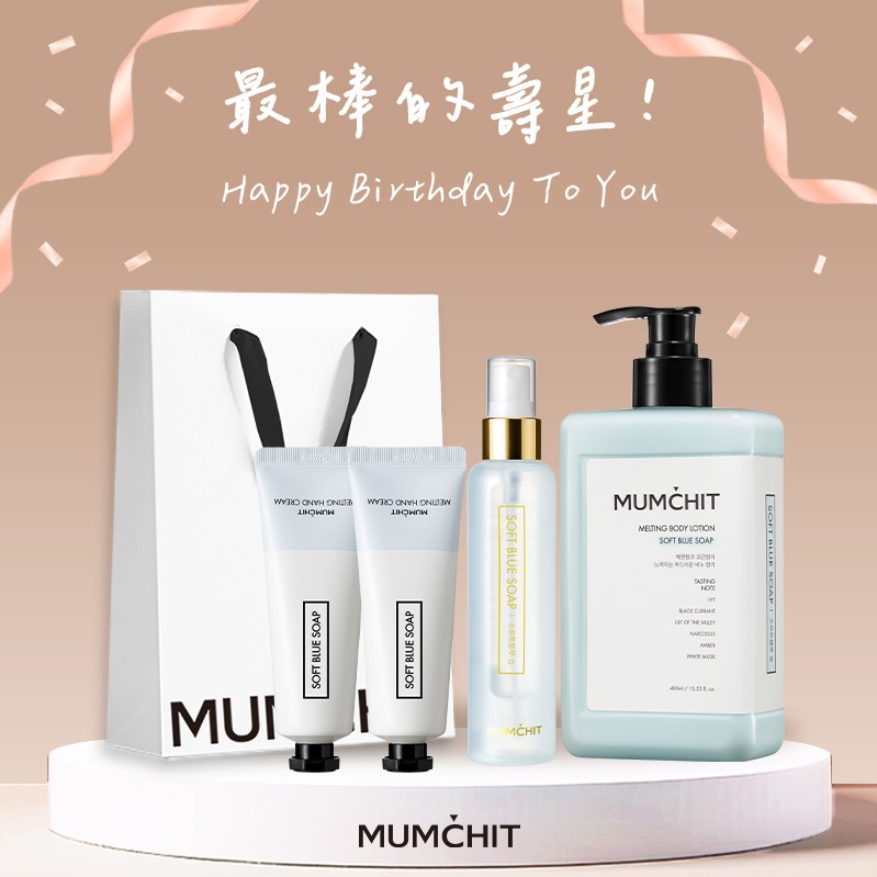 快速出貨【MUMĆHIT】生日快樂!香氛身體乳液+天然香氛沐浴乳+香氛護手霜2入+提袋(生日禮物)