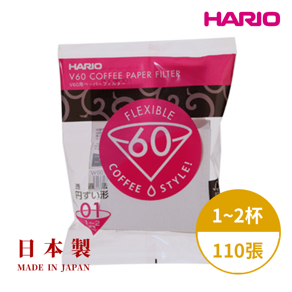 【Hario】日本製V60錐形咖啡濾紙(白色01-500張)[VCF-01-100W](台灣總代貨源)