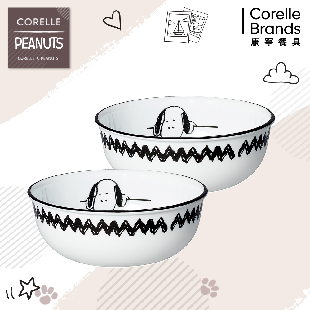 兩入組【美國康寧 CORNINGWARE】SNOOPY史奴比 冒險日常/日常幸福系列 附蓋馬克杯450m