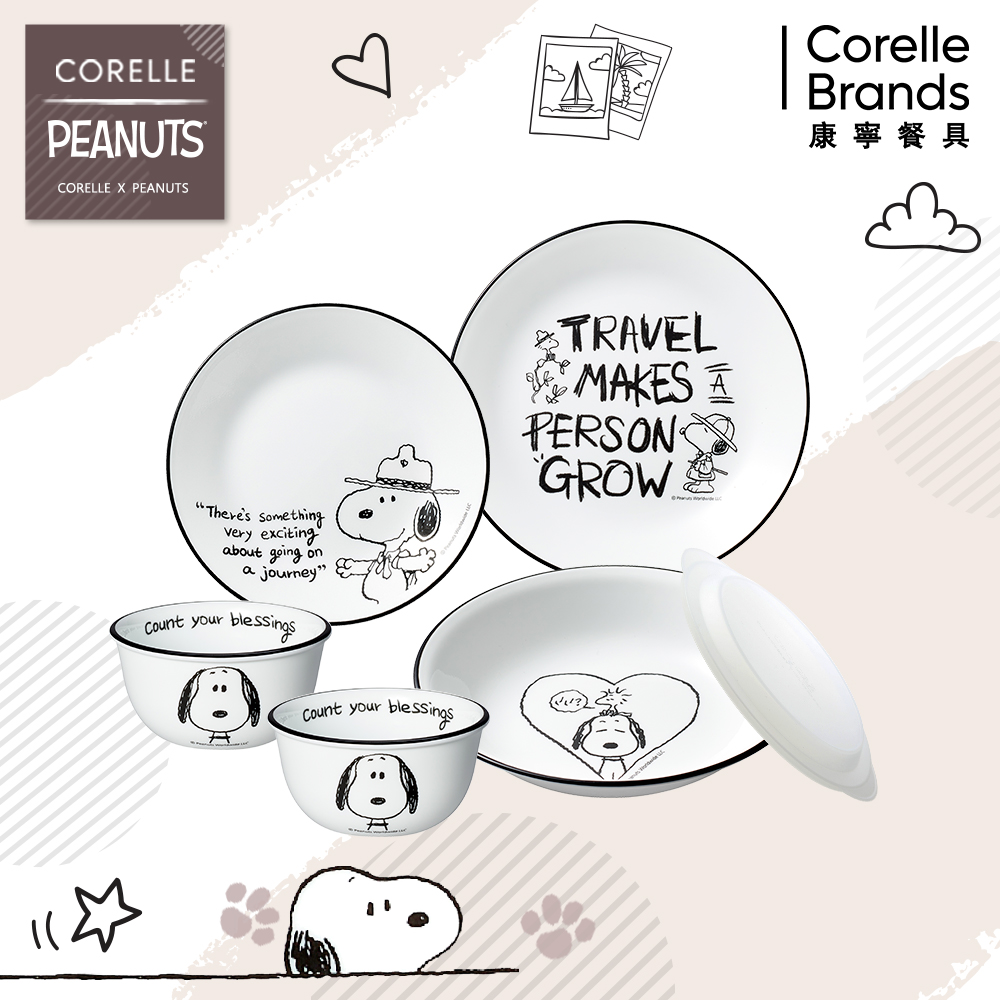 生日禮物任選2款【美國康寧 Pyrex】SNOOPY 史努比黑白復刻耐熱玻璃壺1450ML+玻璃杯710ml