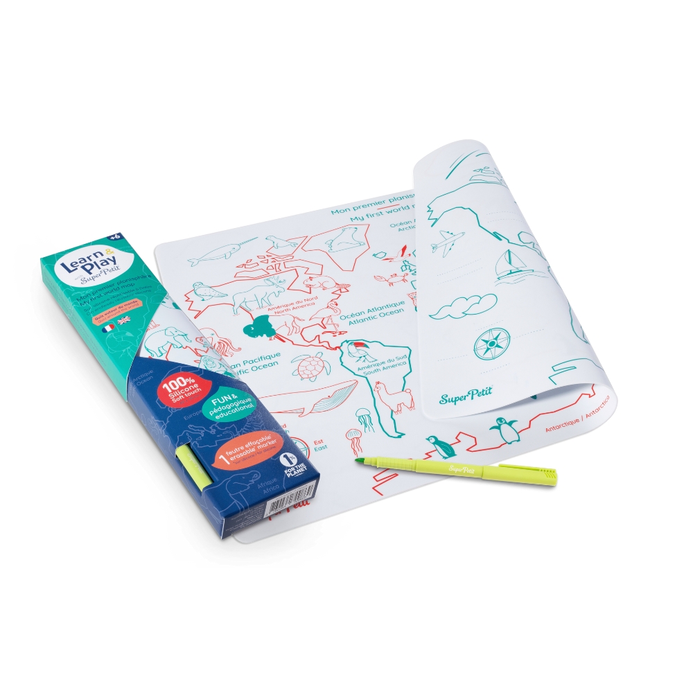 出發去旅行【法國 Super Petit】矽膠彩繪餐墊 MINI 世界地圖系列 (共4款可選) 送給寶貝 兒童禮 生日禮 外出 吃飯 用餐 繪畫 創意發揮 快樂成長