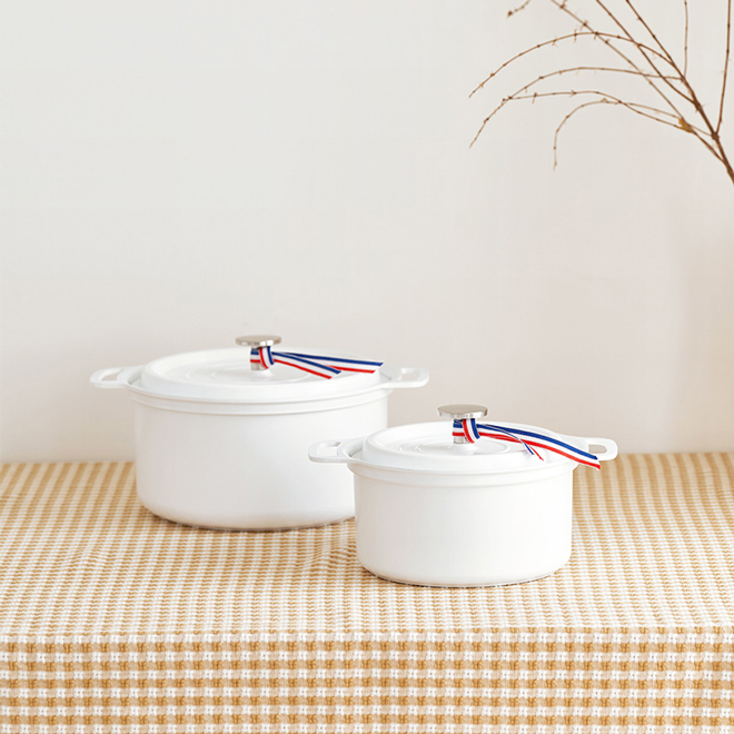 【收禮者可自選】Le Creuset-旋轉木馬系列琺瑯鑄鐵圓鍋22cm (櫻桃紅/棉花白 2色任選)