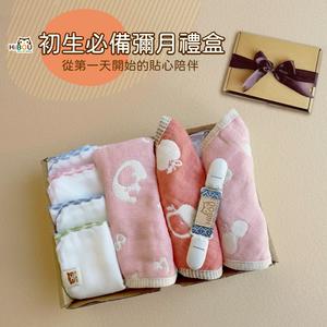 初生必備彌月禮盒∥6重紗圍兜兜+萬用小手帕+雙頭手帕夾+紗布巾無紙袋、卡片環保簡易包裝