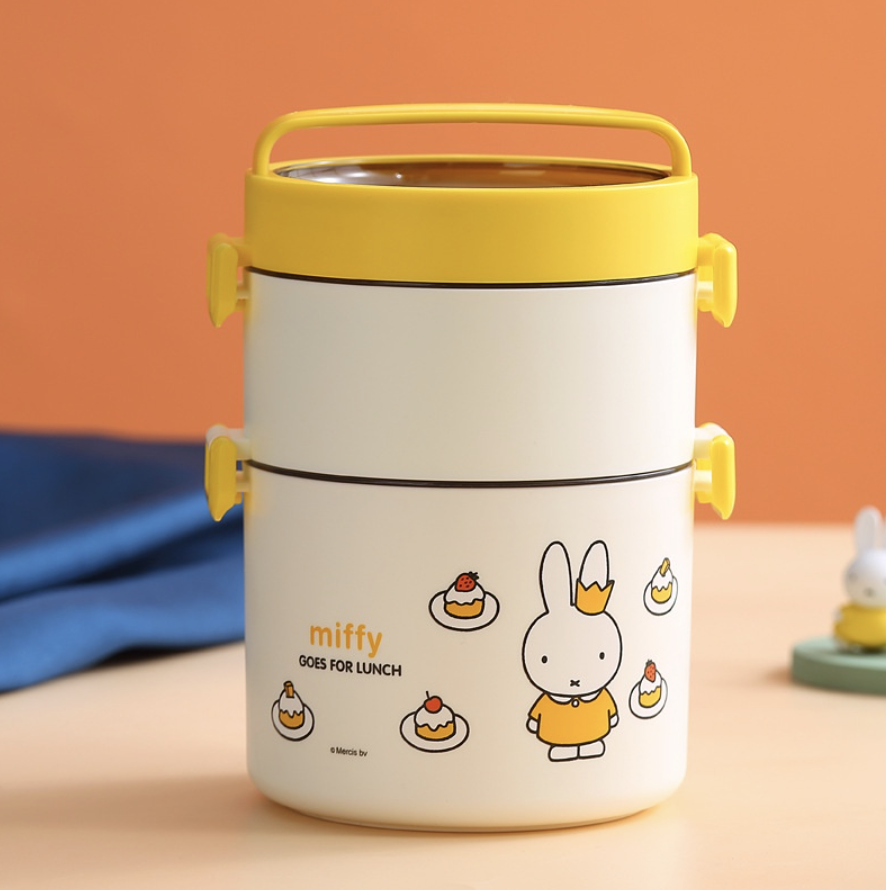 預購【Miffy 米菲兔商店】Miffy 米菲兔經典款 圓形304不鏽鋼雙層便當盒 - 橙色