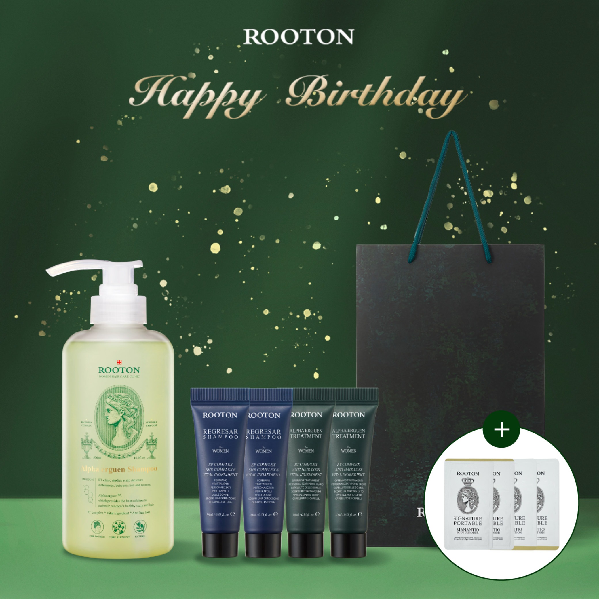 情人節快樂!快速出貨【ROOTON】限量獨家組 | 甦活植萃髮根噴霧150ml+喚活海藻洗髮精70ml+甦活植萃洗髮精70ml+希臘晨霧化妝包+燙金禮袋(LINE獨家情人節禮物)