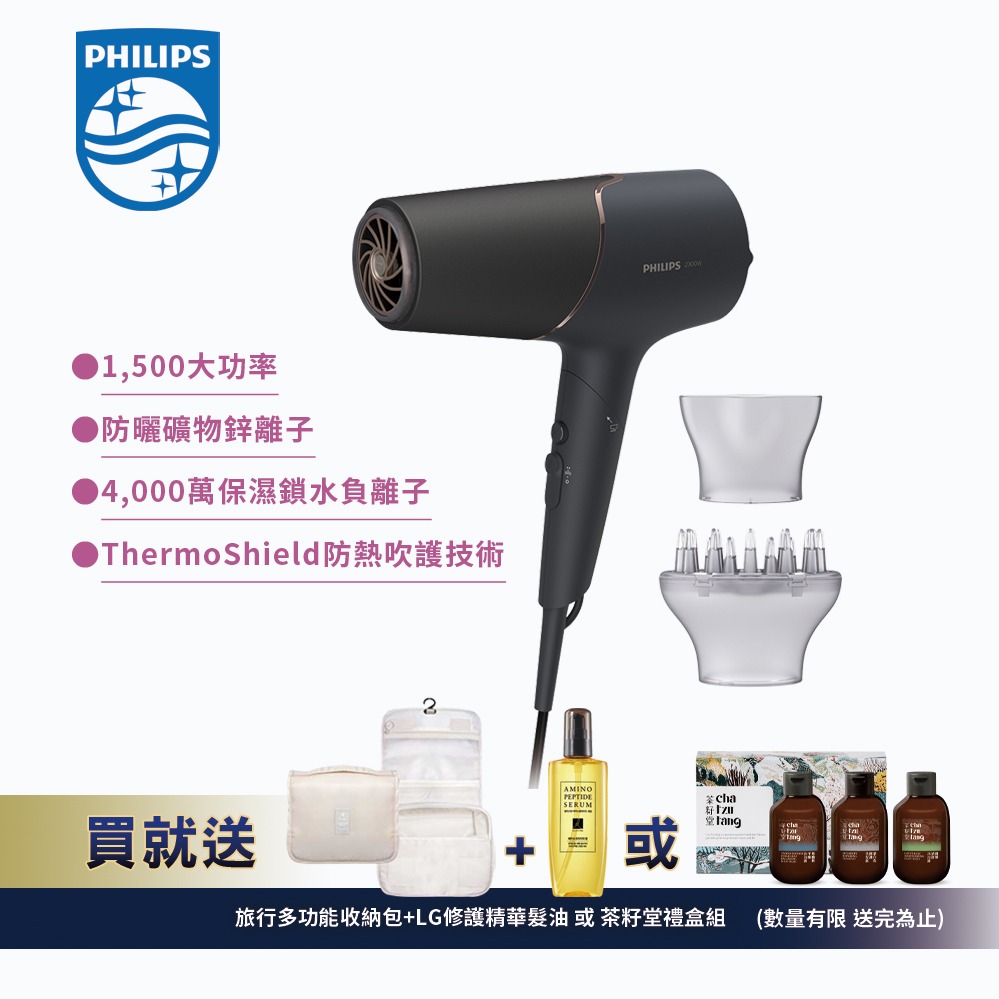 送歐舒丹紓壓枕巾香氛噴霧+ 隨身瓶 【Philips飛利浦】BLDC高速負離子護髮吹風機 (BHD837/11)