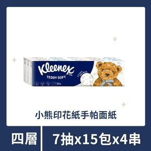 【Kleenex舒潔】Teddy Soft小熊印花紙手帕面紙 7抽x15包x4串|方便攜帶|