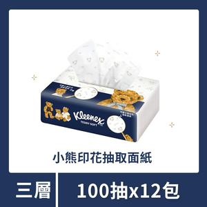 【舒潔】Teddy Soft小熊印花三層抽取面紙 100抽x12包|方便攜帶|