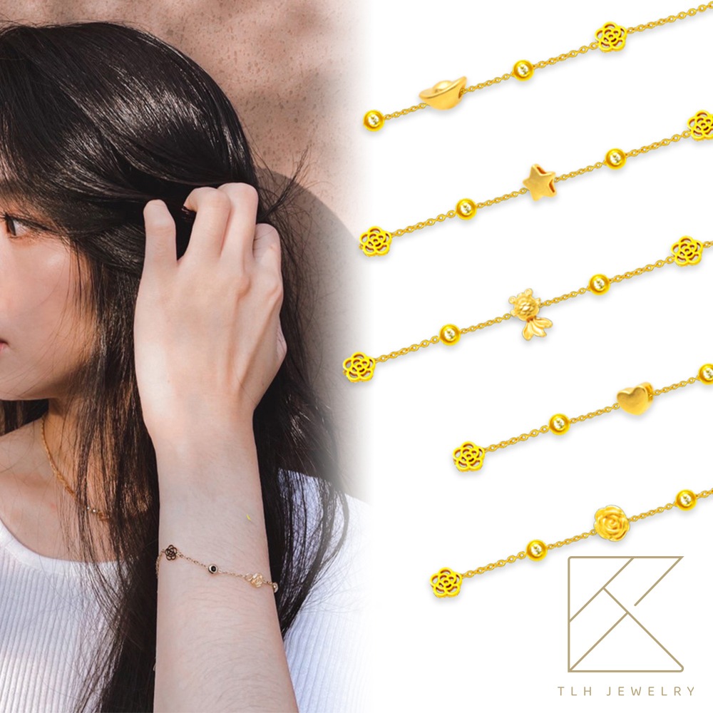 【TLH】黃金墜手鍊 純金999 多選 日系水鑽 約重0.03錢±0.01(生日 情人節 希望 幸運 )