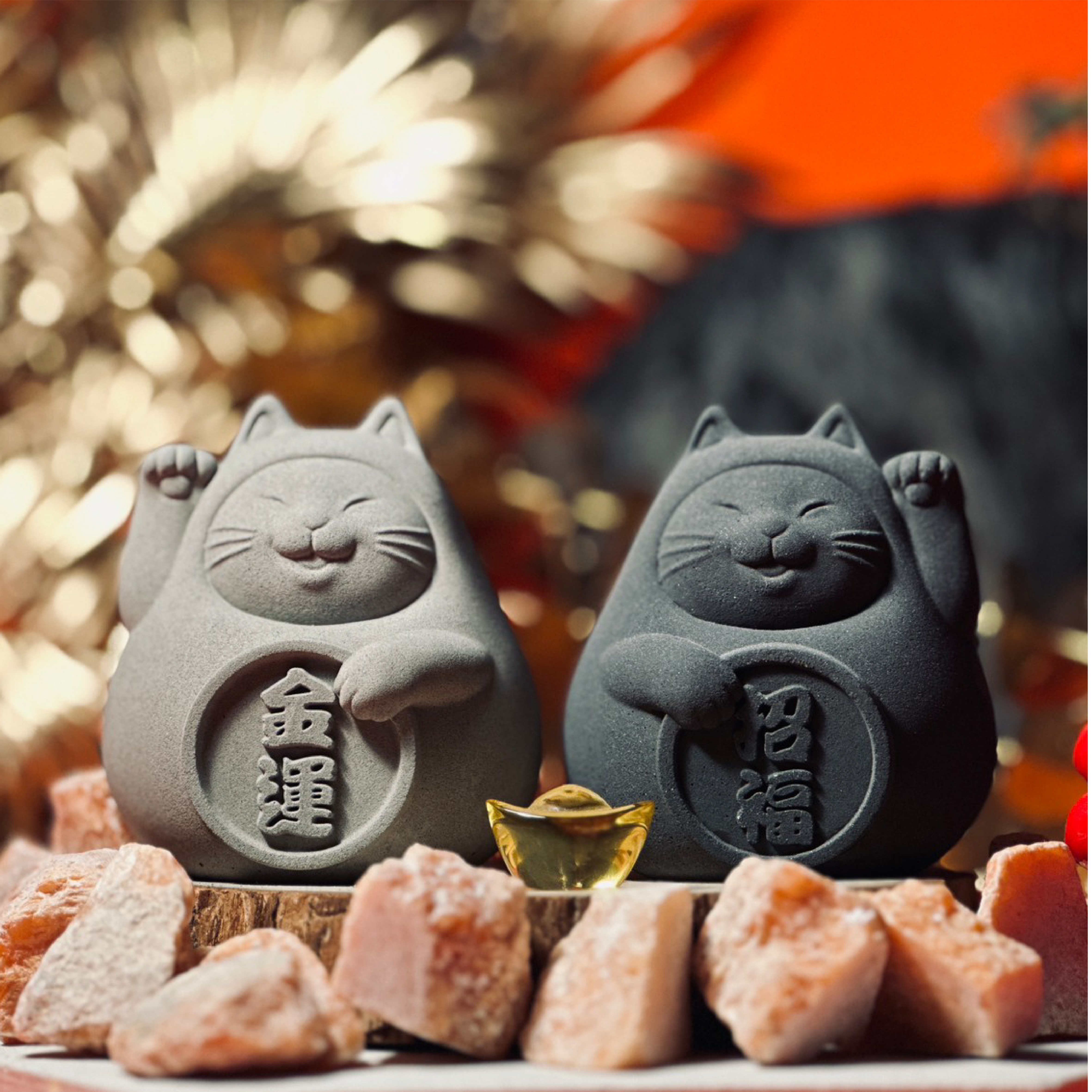 【入厝送禮】圓滾滾幸運貓團圓版 (三入) 炭錢黑