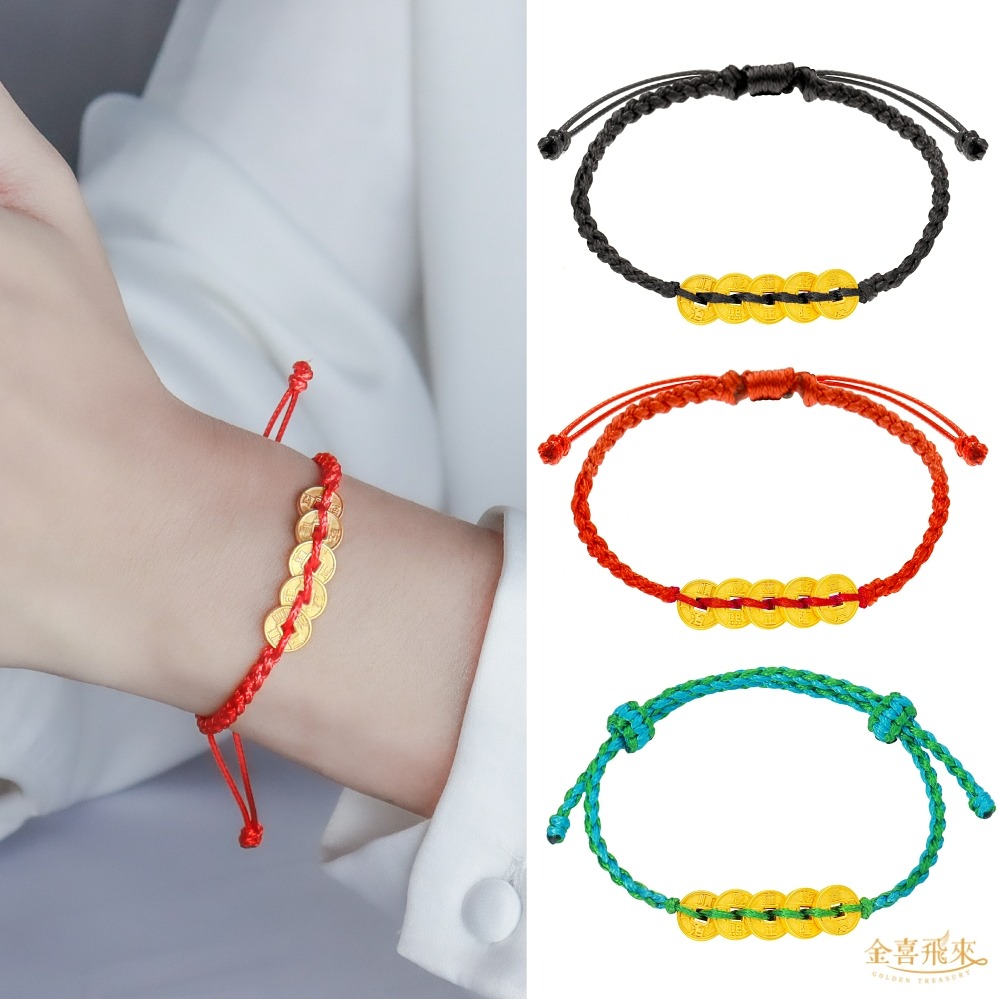 【金喜飛來】黃金手鍊五寶手繩大人款(0.21錢±0.03)【快速出貨】