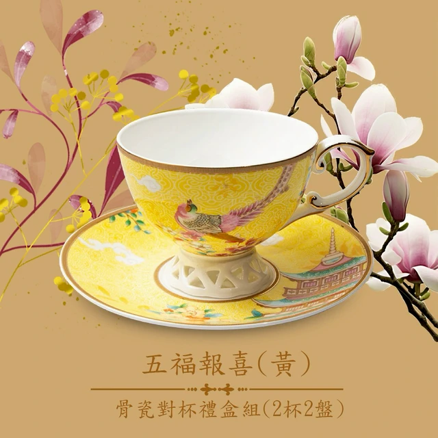 一杯子一輩子【A&L】骨瓷對杯禮盒組- 鳳凰呈翔(2杯2碟_精美禮盒包裝)