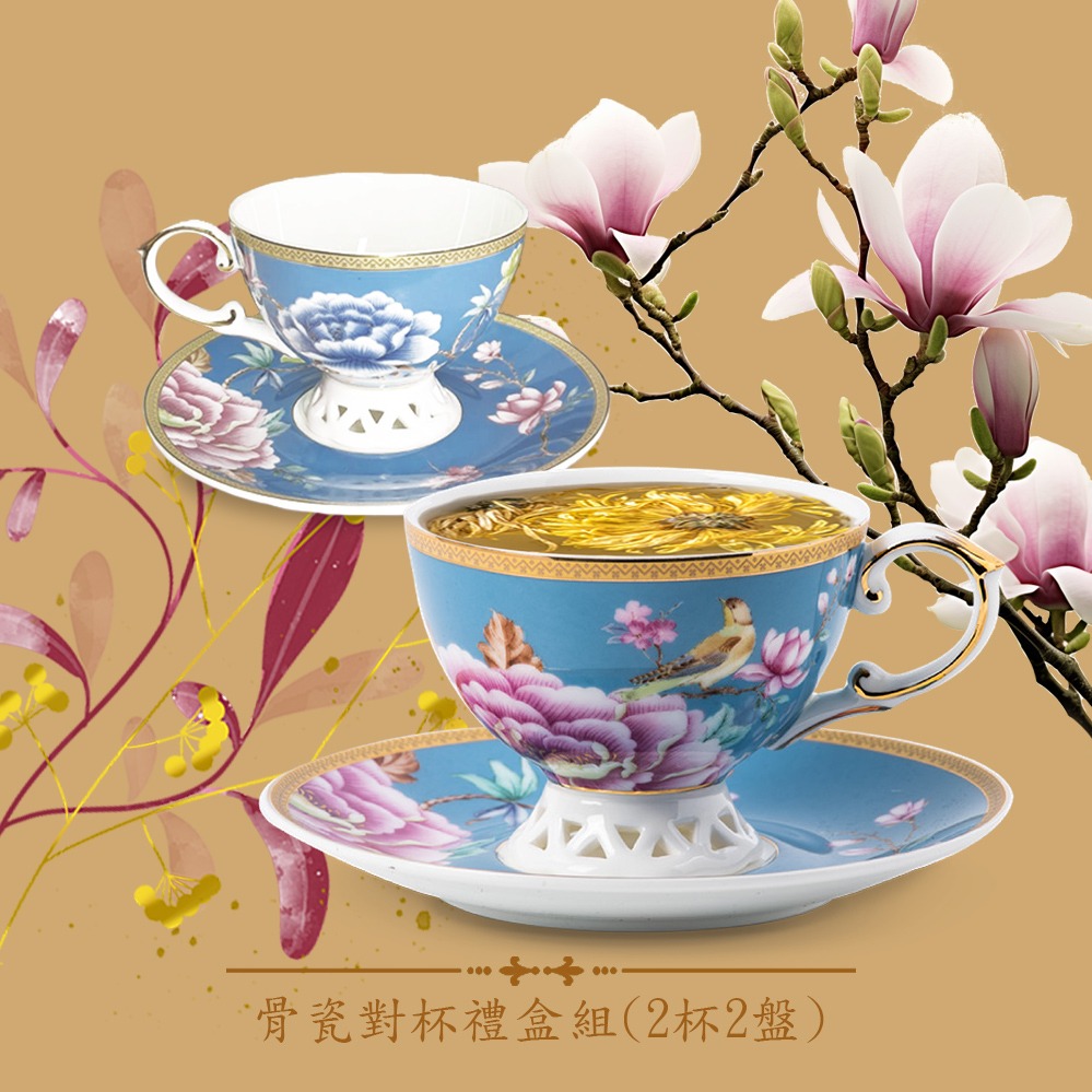 一杯子一輩子【A&L】骨瓷對杯禮盒組-馬賽風情(2杯2碟_精美禮盒包裝)