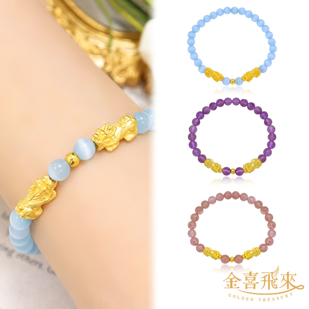 【金喜飛來】黃金手鍊莫比乾坤龍鳳佛教七寶水晶串多選(0.07錢±0.02)/新年禮物/過年/馬年/生日/情人節/交換禮物/紀念日/金飾/小資首選/朋友家人長輩送禮【快速出貨】