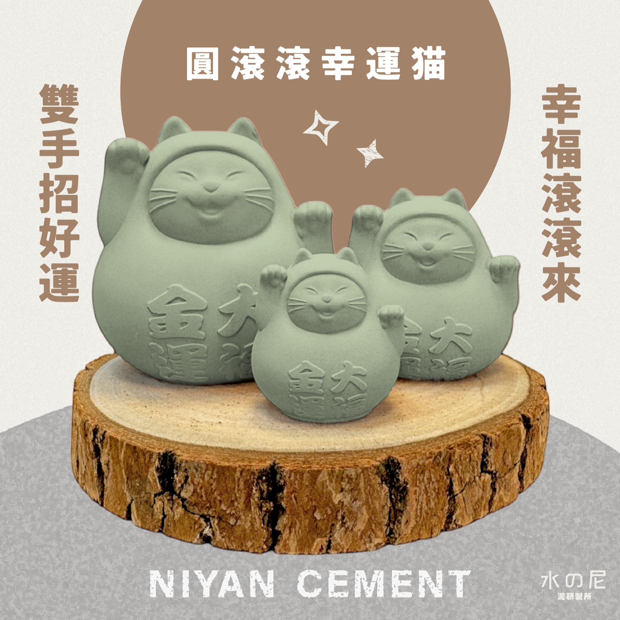 【入厝送禮】圓滾滾幸運貓團圓版 (三入) 炭錢黑