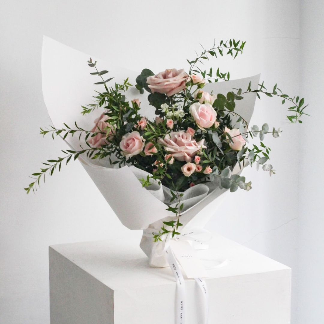 【ELLESHOP】 生日禮物、畢業花束、告白禮物❤️ (限雙北配送) 白色花藝-康乃馨鮮花束-溫柔粉