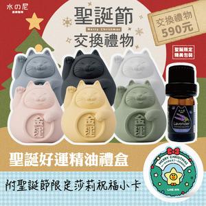 【聖誕好運禮盒】胖胖招財招福貓 (小)+精油(收禮者可任選)