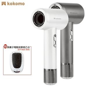 【贈負離子電動按摩梳】kokomo 風飛飛・日本負離子高速吹風機 智能溫控 強風集中速乾 護髮保濕 灰銀色 / 珍珠白 KO-IH2335